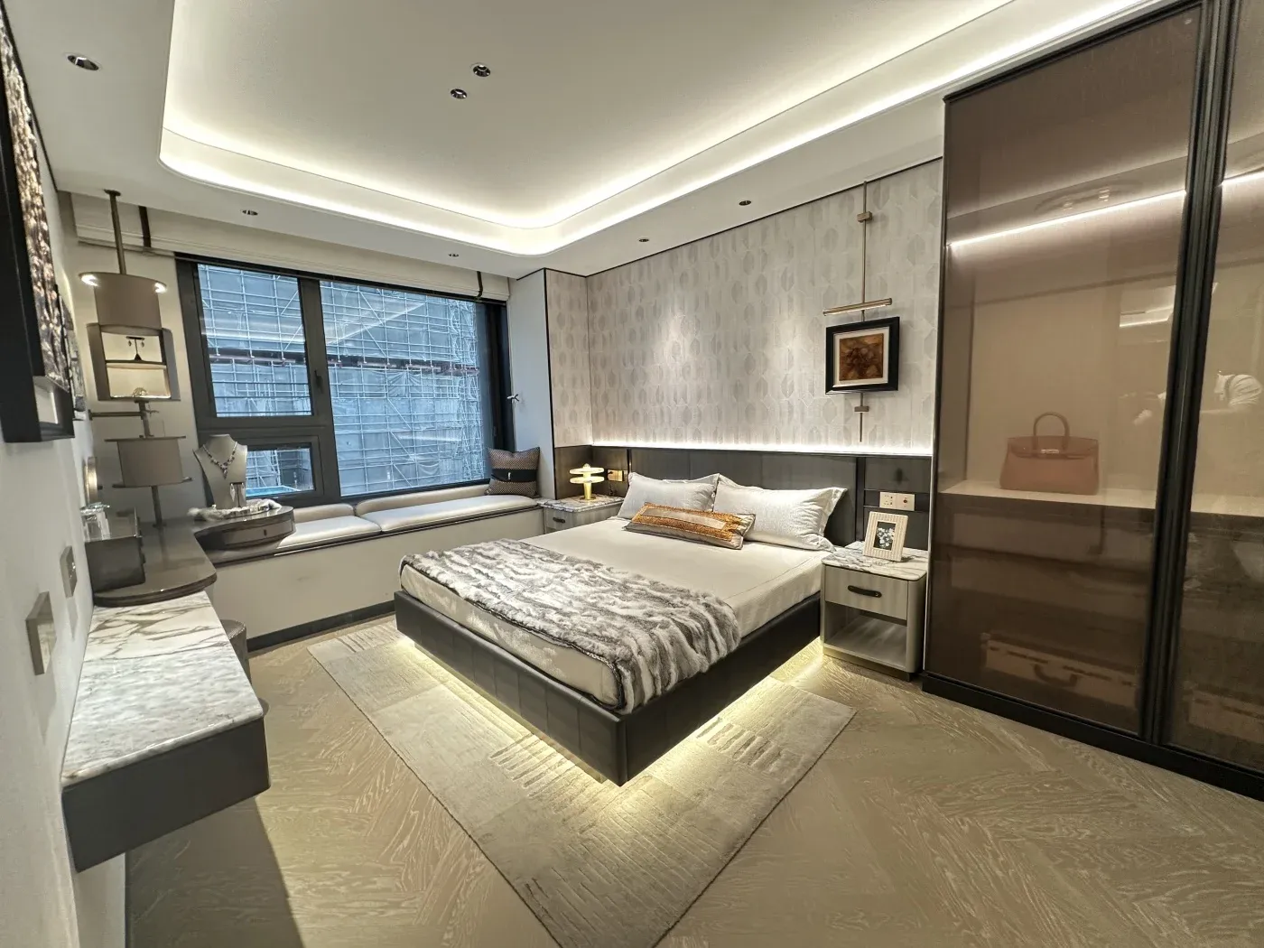 真正让我破防的是96㎡户型:U型厨房配4个飘窗,咖啡机放在飘窗上秒变网红角。但得吐槽主卧飘窗深度60cm,放床垫会挡暖气片。倒是141㎡的270°转角飘窗,配个投影仪直接变身私人影院。