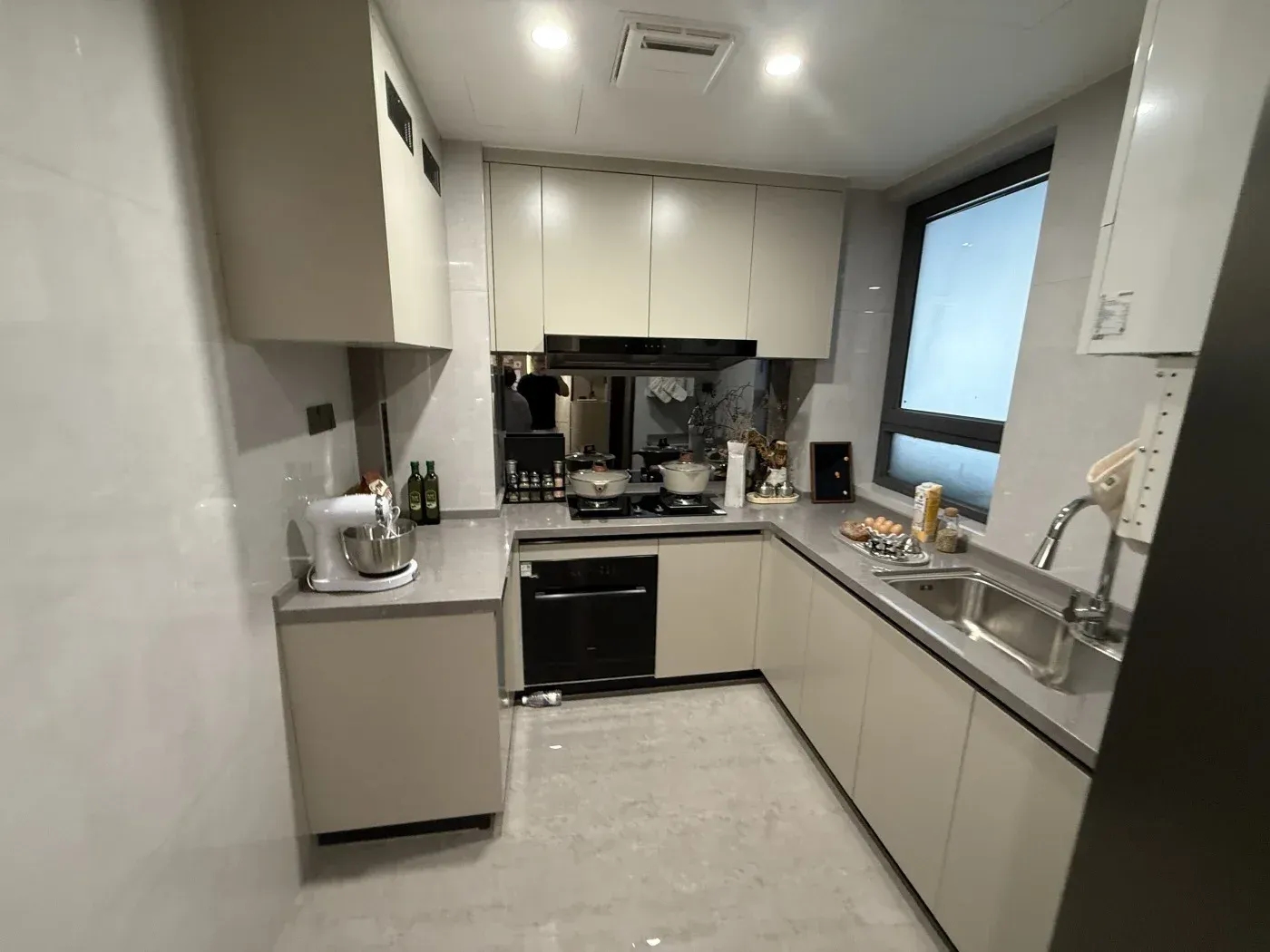 实测U型厨房能塞下双开门冰箱!设计师在飘窗加装了隐藏式书架,实测可摆放47本专业书籍。主卫三分离够宽敞,实测浴缸尺寸可完美适配1.8米健身党!