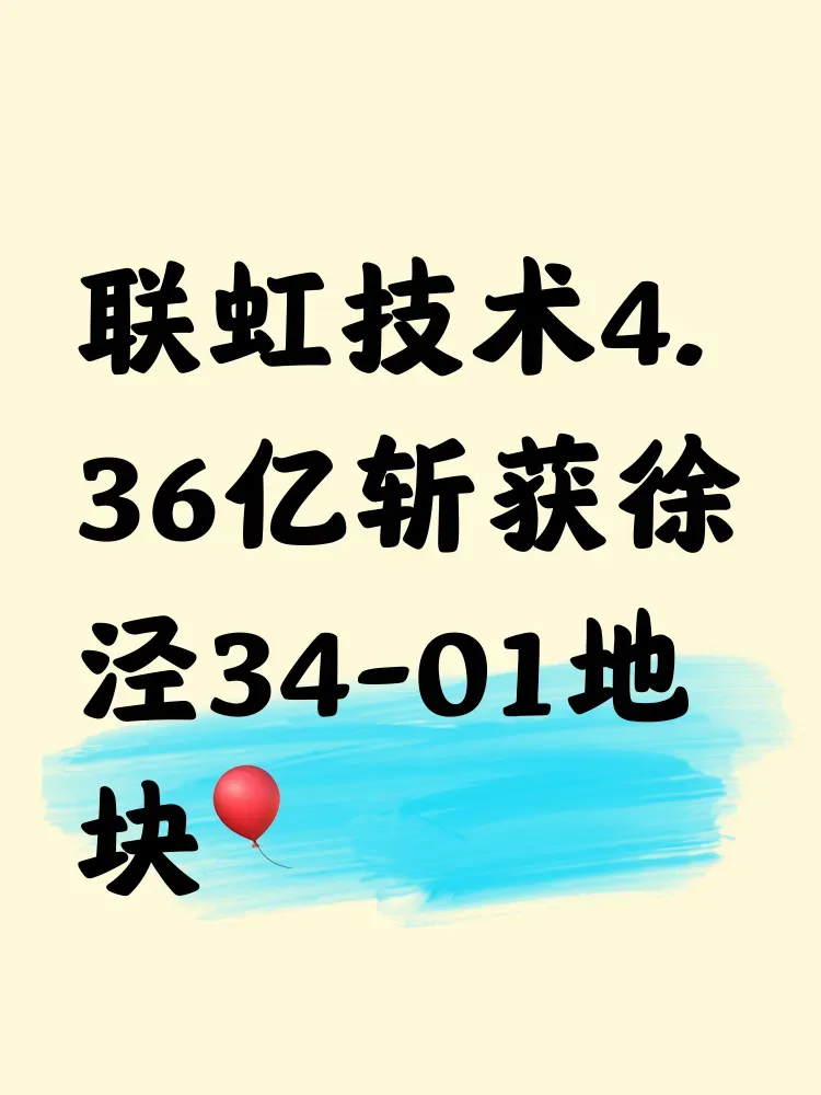 青浦徐泾34-01地块今日尘埃落定!TP-LINK旗下联虹技术以4.36亿元拿下17439.5㎡黄金地块,将打造2.5容积率办公园区。根据规划要求,这里必须引入网络通信及安防监控领域的国际总部,每个办公单元面积≥600㎡的商业标准,带来高端产业聚集效应。