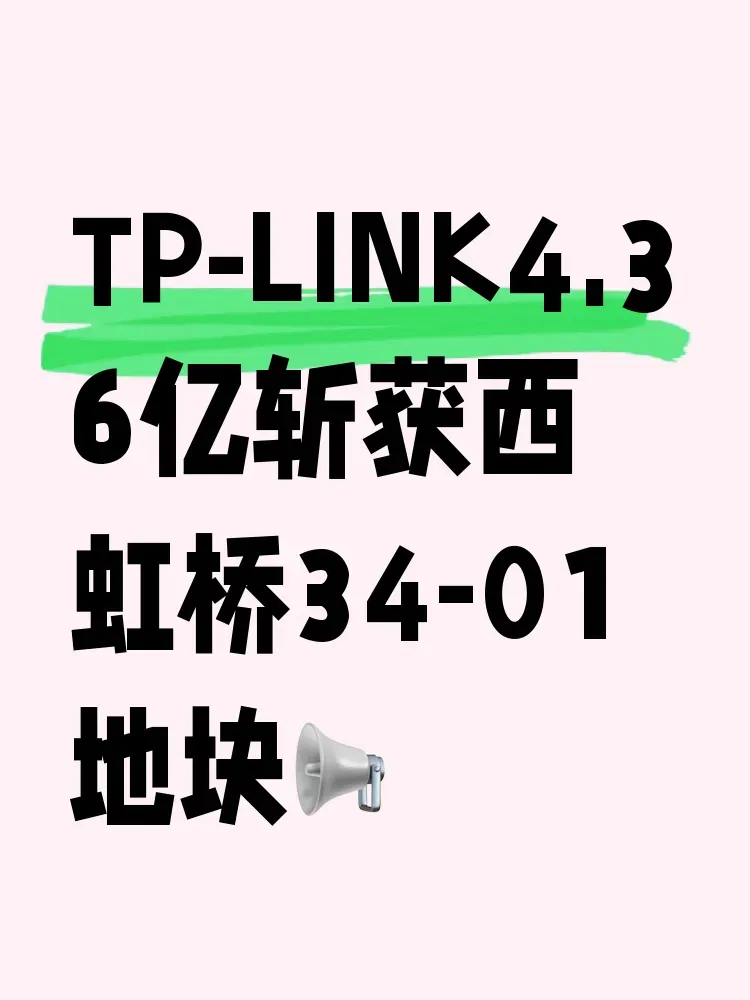 科技巨头TP-LINK近日重金布局青浦徐泾,以底价斩获西虹桥34-01地块!这块17439㎡的办公用地将建造超4万方智慧园区,单层办公不低于600㎡的超大空间配置,专为全球总部级企业量身定制。