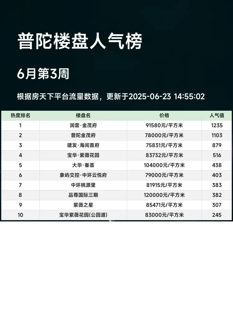 买房选对区域很重要,但同区域内楼盘差异也不小!这份普陀人气榜单帮你快速锁定优质盘💯 当前市场下,核心逻辑是:交通便利>户型实用>配套成熟>价格合理。跟着热度买,踩坑概率直降50%👇