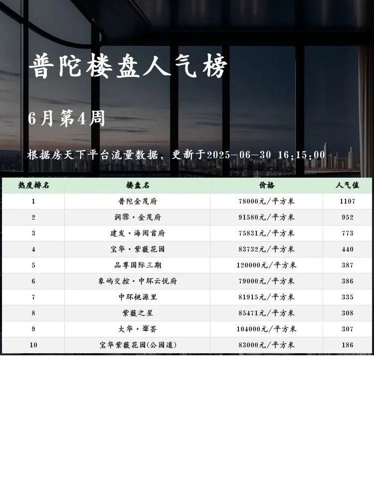 买房不踩雷💣这份普陀区最新人气楼盘榜单必须收藏!当前市场下,选房既要看地段潜力,也要对比配套成熟度,更要关注户型实用率~今天为大家深扒前三名实况,优缺点全透明👀