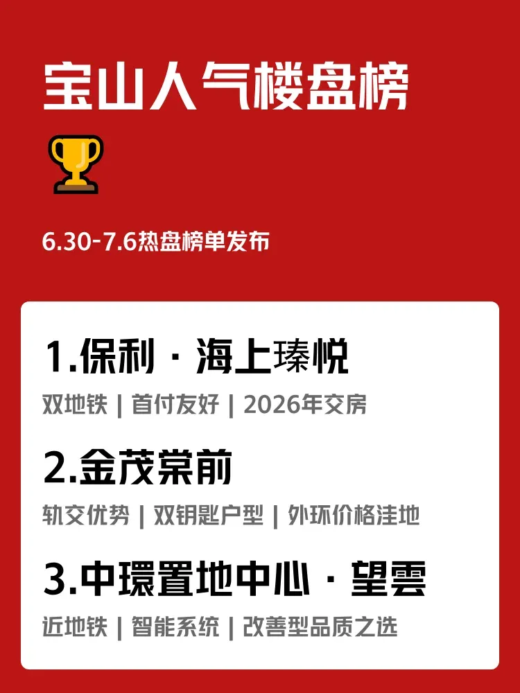 🔥上周(6.30-7.6)宝山新房热度爆表!3个项目日均到访破百组,但"准业主每天通勤2小时vs步行5分钟到家"...你会怎么选?