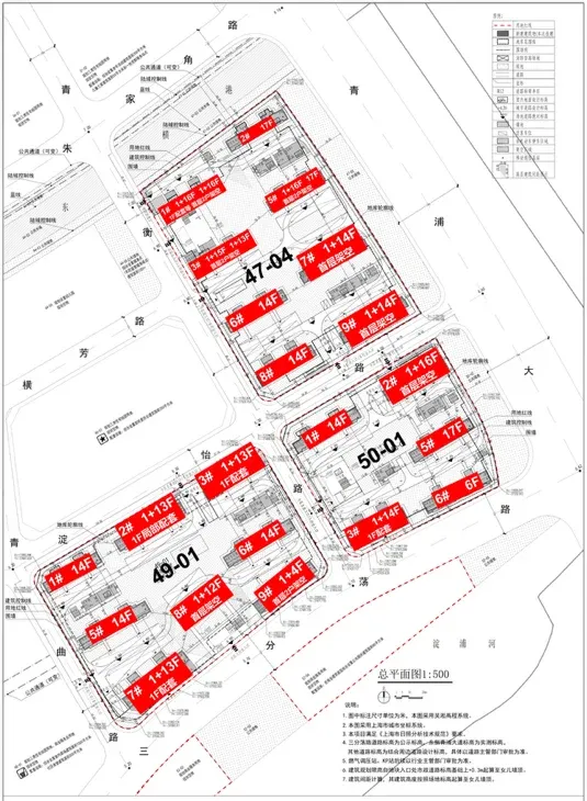 ✅47-04地块:8栋14-17层高层,容积率2.35,拥8200㎡绿地