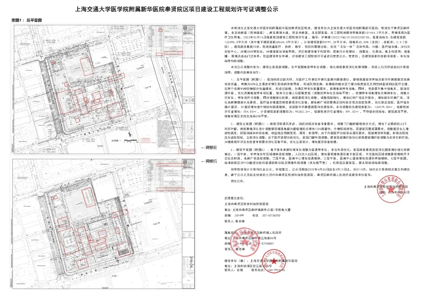 上海交通大学医学院附属新华医院奉贤院区项目新建工程建设工程规划许可证变更公示