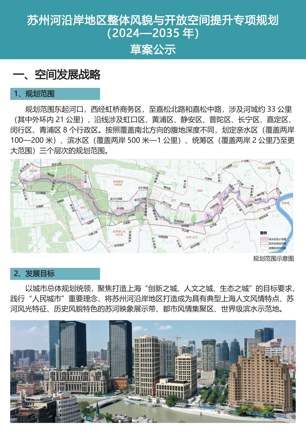 关于苏州河沿岸地区整体风貌与开放空间提升专项规划(2024—2035 年)的草案公示