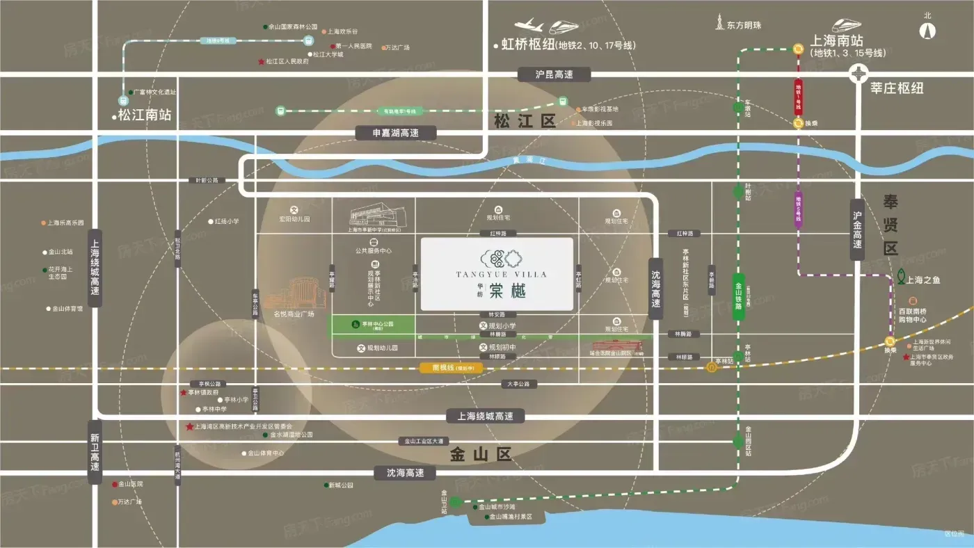 先说交通真能打:现有金山铁路接驳南站,规划中南枫线要打通南部动脉。实测虹桥枢纽7路45分钟到虹桥,比想象中快。医疗配套是王炸,在建的瑞金金山院区步行可达,三甲资源碾压同类新盘。