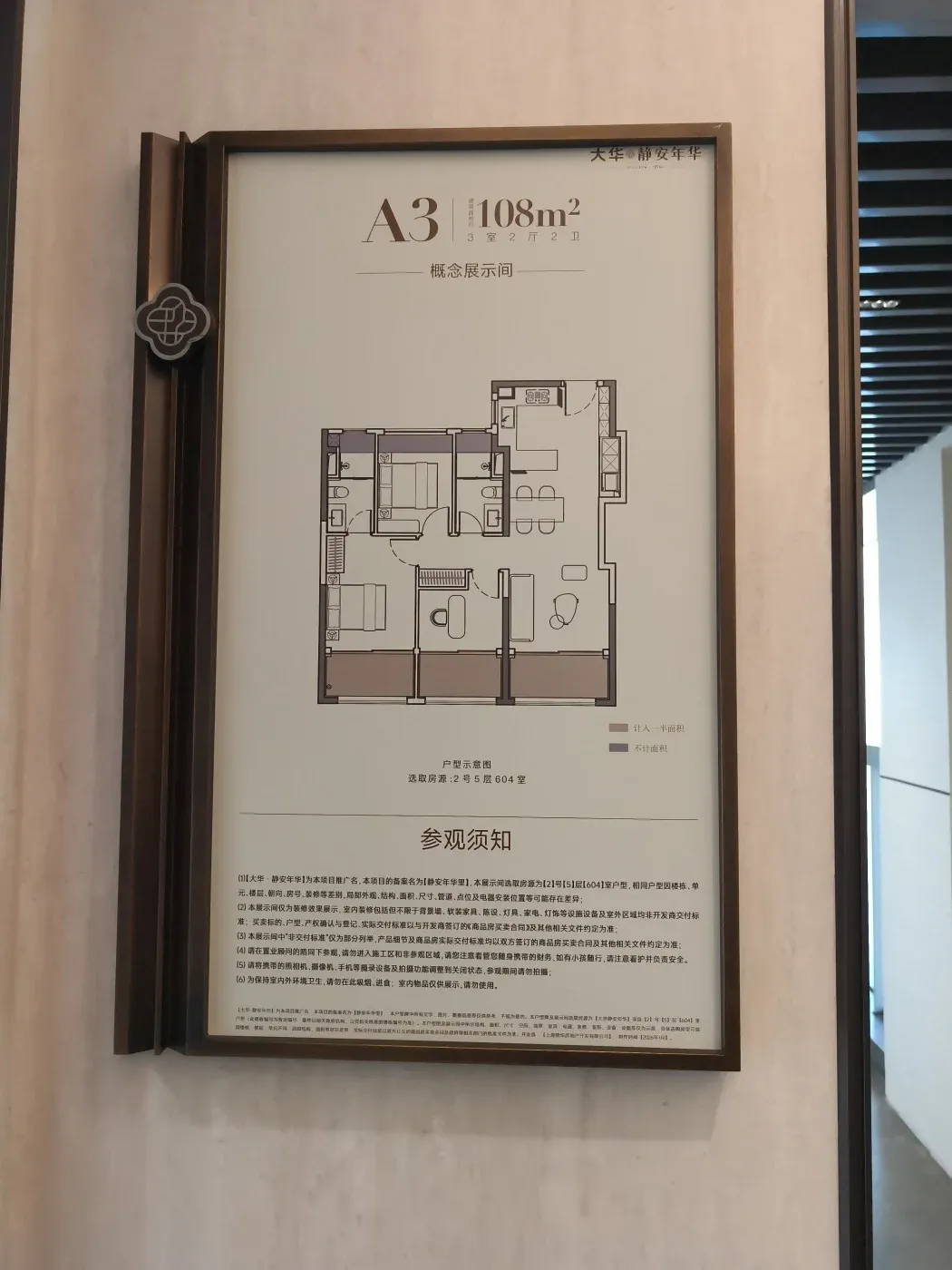建面约108㎡3房,三阳台面积达约13㎡(赠送一半),飘窗赠送约3.3㎡,室内使用面积达约94.5㎡,实得率高达约87%,总赠送面积比常规次卧都大。