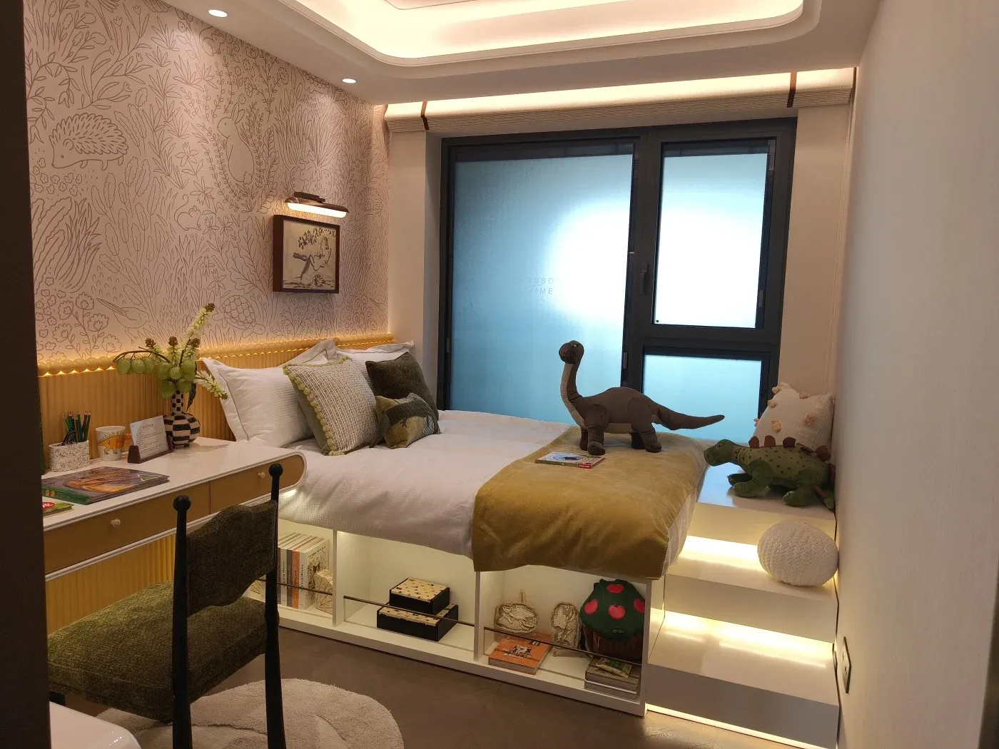 108户型南次卧,在摆放双床头柜+衣柜的基础上,靠窗区域仍留有空间