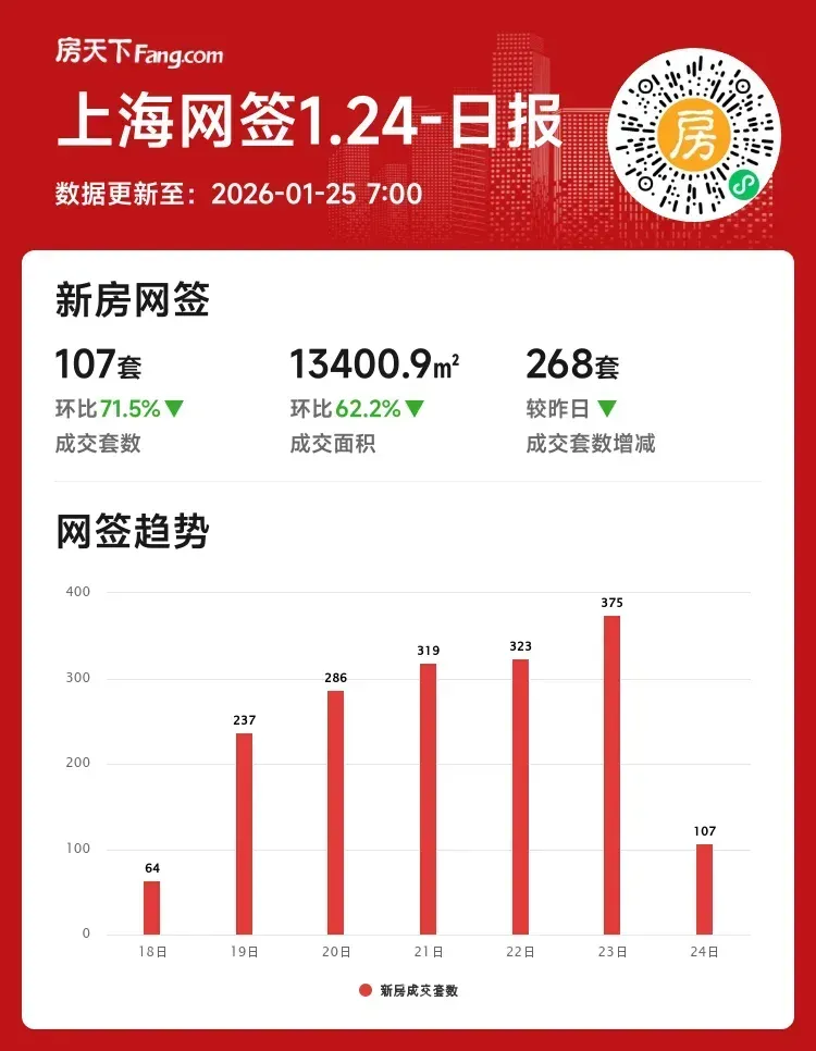 成交套数:107套 ↓71.5%(较昨日减268套)