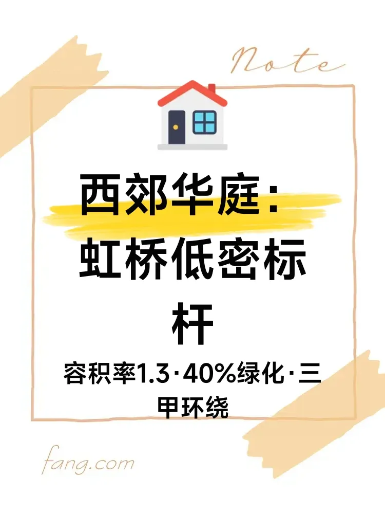 虹桥路1889弄的西郊华庭建成于2003年,由6层花园洋房与联排别墅组成。项目容积率1.3显著优于周边社区,40%绿化率形成立体园林景观,呈现中内环间稀缺低密住区特质。