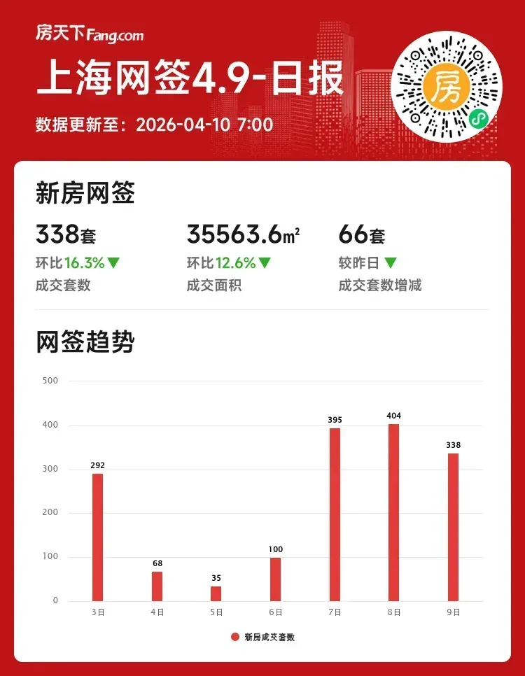 2026年04月09日上海新房市场遇冷?成交套数环比跌16.3%!