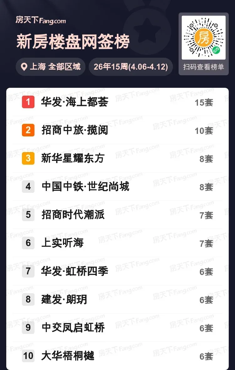 上周上海新房网签数据新鲜出炉,华发·海上都荟成交15套,表现突出;招商中旅·揽阅以10套成交紧随其后。新华星耀东方和中国中铁·世纪尚城各成交8套,其他如招商时代潮派、上实听海等楼盘也纷纷上榜。这些数字背后,是否藏着你的心仪之选?从趋势看,热门区域楼盘可能持续吸引目光,市场活跃度有望保持。快来聊聊你关注哪个楼盘,分享你的想法吧!