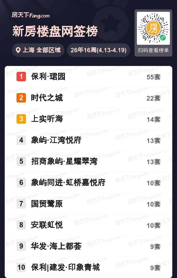 上周上海新房网签数据新鲜出炉,保利·珺园以55套成交套数表现突出,成为市场焦点。TOP10排行榜中,时代之城22套、上实听海14套紧随其后,象屿·江湾悦府和招商象屿·星耀翠湾各成交13套,象屿同进·虹桥嘉悦府、国贸鹭原、安联虹悦均为10套,华发·海上都荟和保利|建发·印象青城各9套。从数据趋势看,保利·珺园的热度可能持续,整体市场呈现活跃态势。你对哪个楼盘更感兴趣?分享你的看法吧!