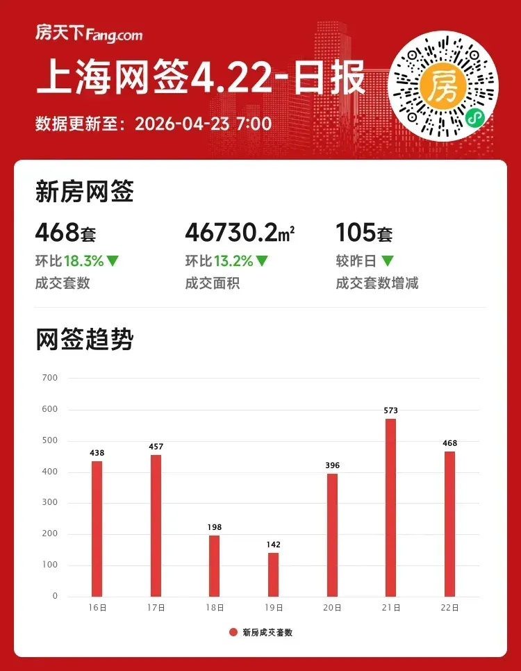 成交套数:468套 ↓18.3%(较昨日减105套)