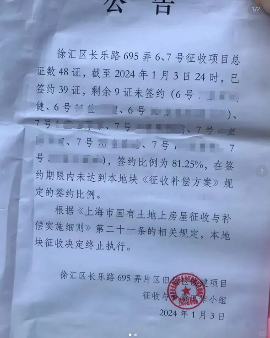 但反转来了,这次动迁却以约19%户居民反对而终止执行。