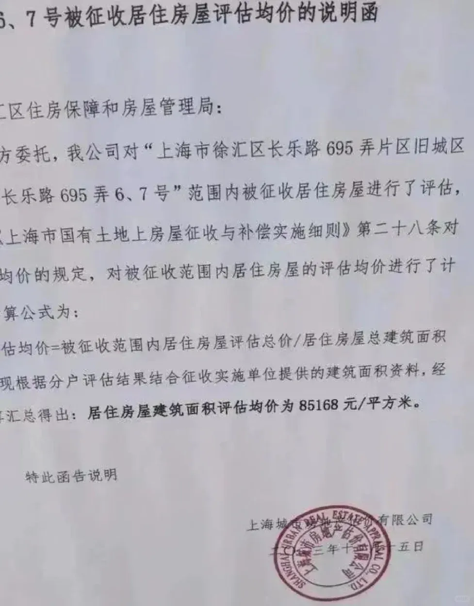 去年十一月,徐汇某小区拆迁动员,房屋估计定在了8.5万/平。