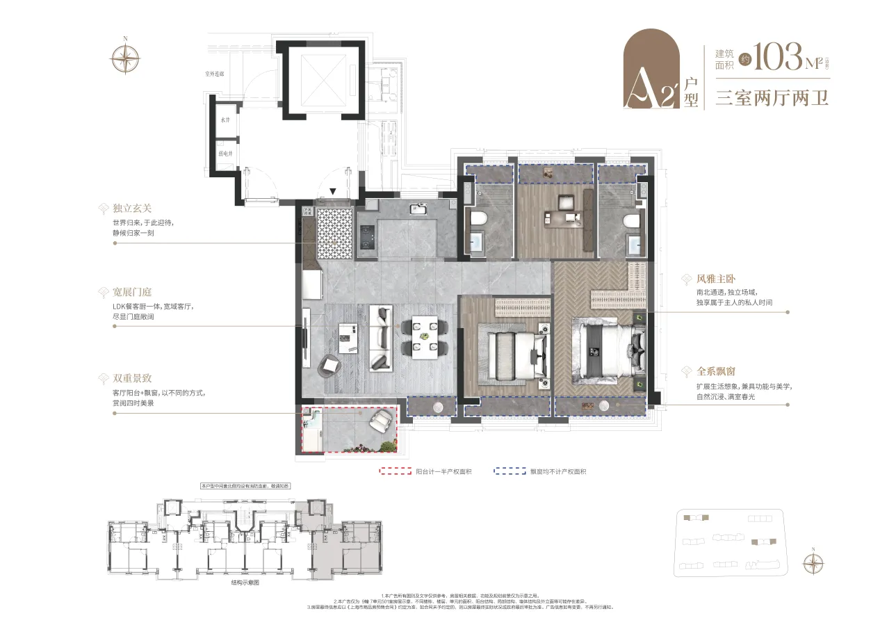 项目首开户型-103平米边套。