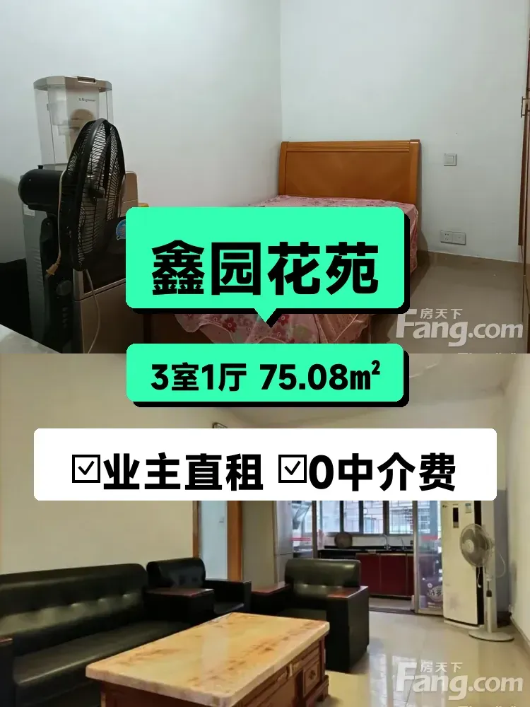 标题:自家南向三居室出租✨鑫园花苑75平仅需1000/月