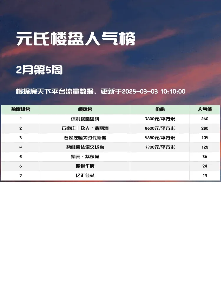 在买房这件大事上,选对楼盘是关键!🏠 当前市场,购房者更注重性价比、地段和未来发展潜力。这份元氏人气楼盘榜单,帮你快速锁定优质房源,轻松做出明智选择!