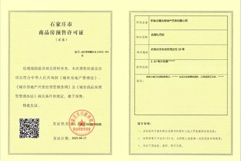 花海牡丹院,十号楼成功取证,供应房源共104套,其中两居室26套,三居室78套!欢迎品鉴