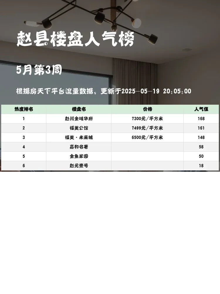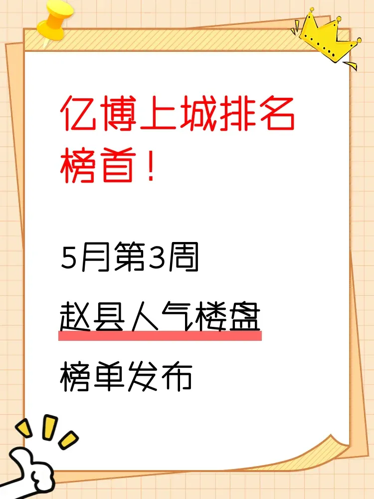 买房不踩坑,榜单来指路!🔥 当前楼市分化明显,选对区域和楼盘至关重要。这份赵县人气楼盘榜,真实反映市场热度与购房者偏好,帮你快速锁定优质选项。地段、价格、配套三大要素,一个都不能少!