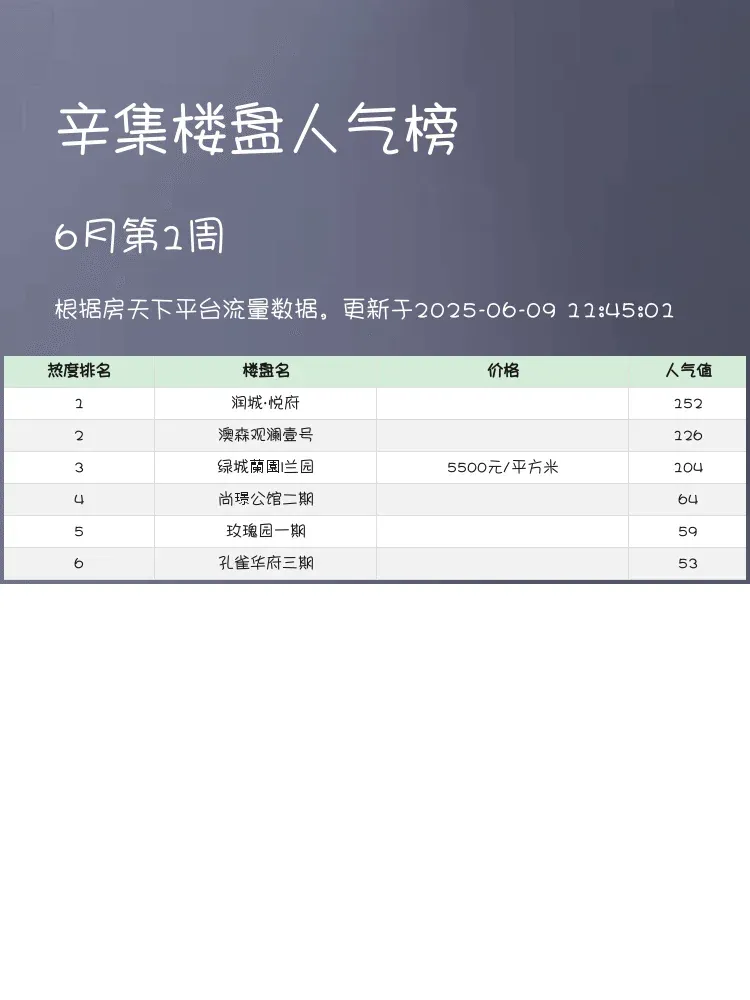 买房选对楼盘太重要啦!🏡 这份辛集最新人气榜单,帮你快速锁定优质楼盘~当前市场下,地段、配套和性价比才是王道!榜单根据真实热度数据生成,绝对值得参考✨ 快来看看有没有你心仪的楼盘吧!