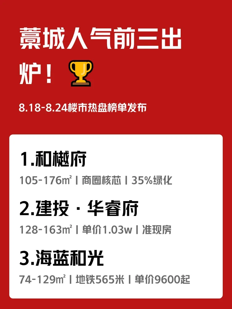 上周(8.18-8.24)藁城新房市场太热闹🔥 前三名楼盘人气值断层领先!每天通勤3小时VS家门口逛商场,你会怎么选?