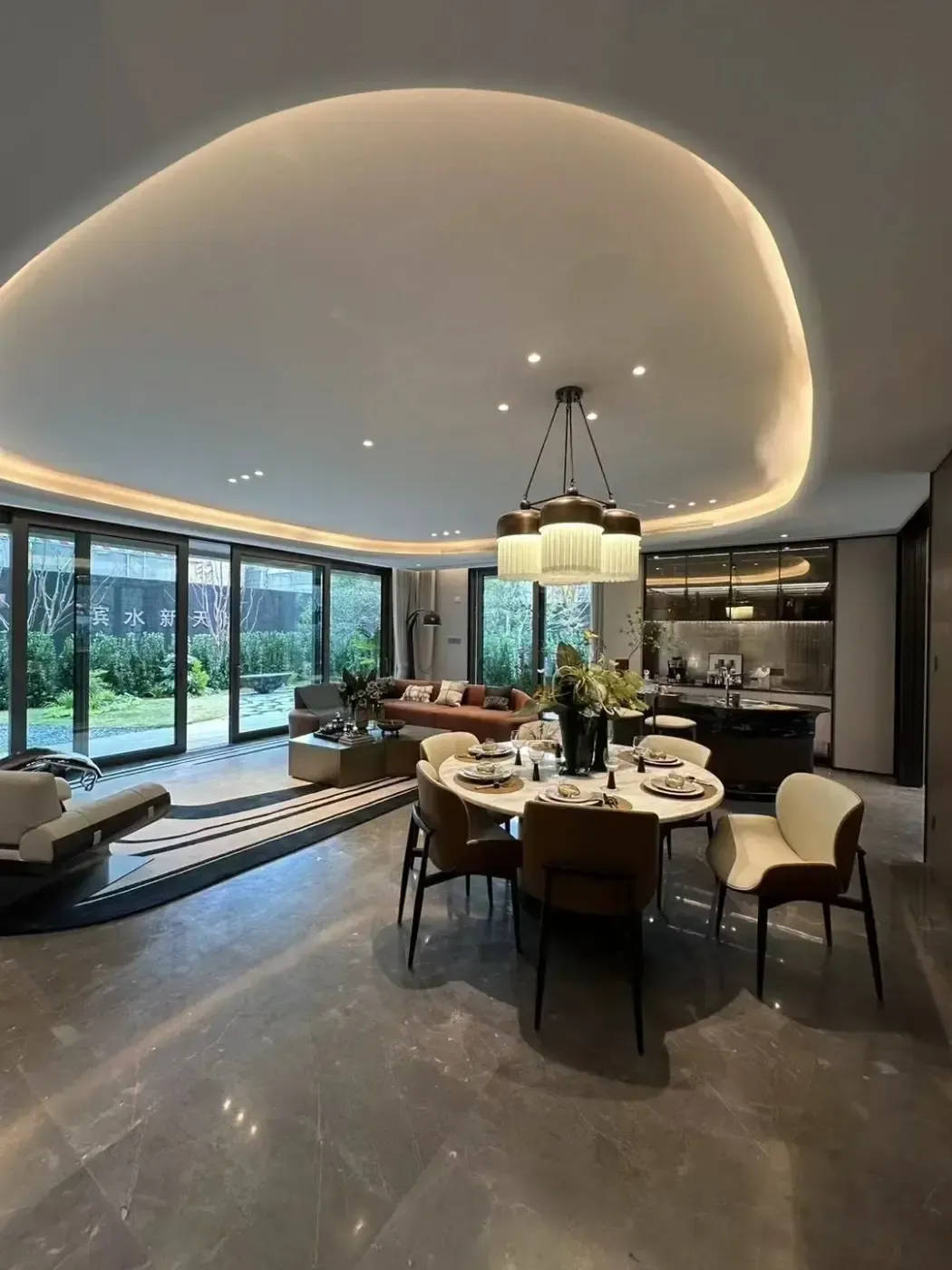实探发现秘密藏在建筑基因里:仿宋屋檐搭配全景落地窗,既保留飞檐翘角的仪式感,又引入满室阳光。每户标配的双层花园,上层种苏式盆景,下层搞露营帐篷毫无违和。更惊喜的是社区规划——中央水景倒映着连廊剪影,雨天散步像在画中游~