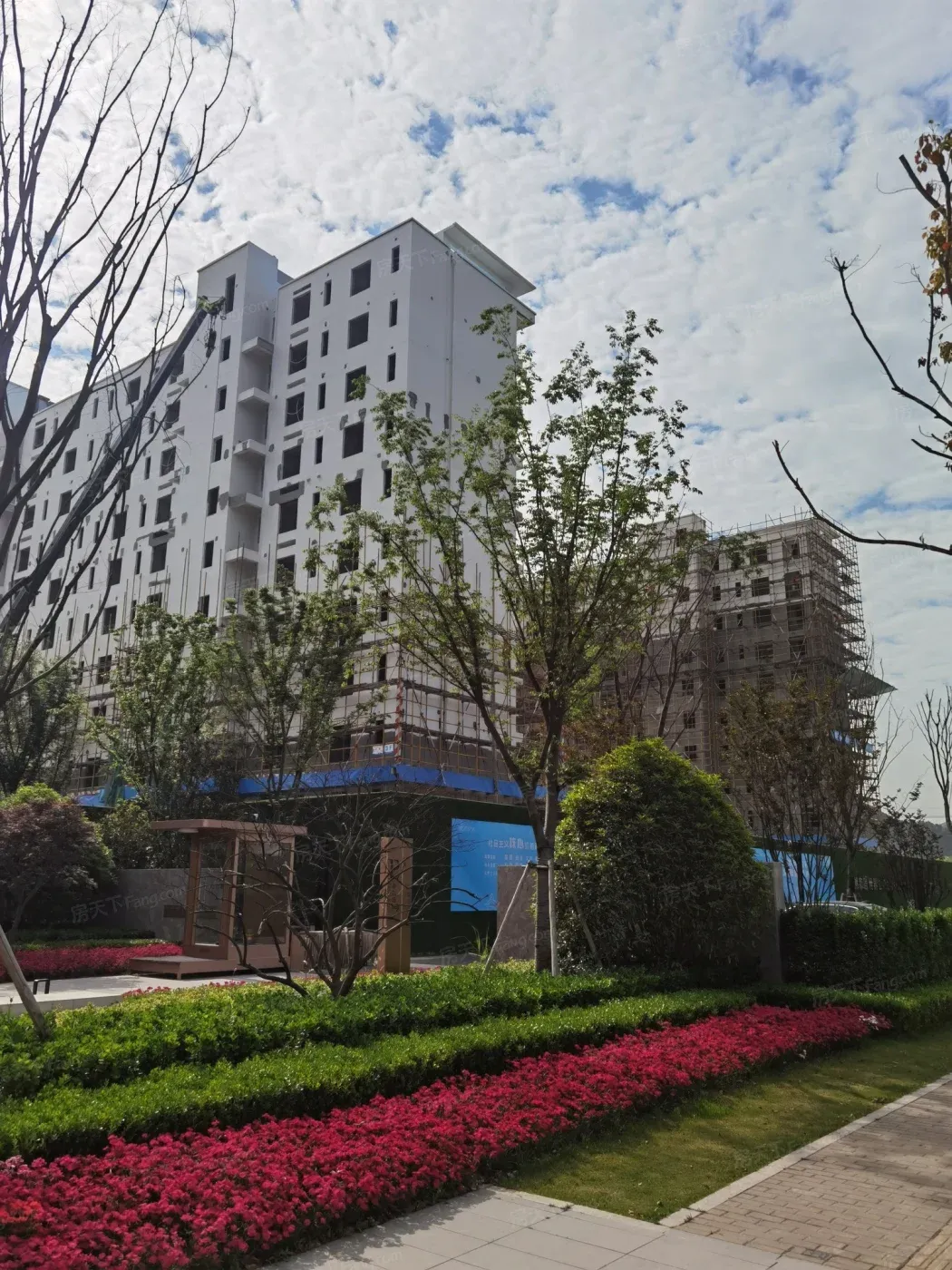 穿过施工围挡的瞬间被震撼:楼栋外立面的金属线条已经开始反光,园林里的罗汉松都绑好了防风支架!工地开放日看到的交付标准,比宣传图还卷——连车库环氧地坪都做了防滑纹理。