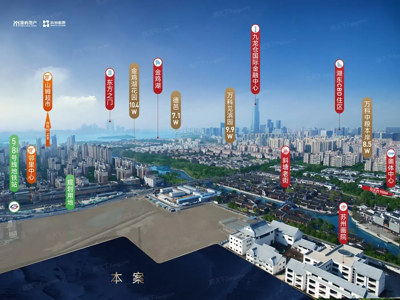 ❶「双地铁buff」实测地铁5号线斜塘站步行4分钟,未来8号线交汇让通勤成全家刚需。但想步行去金鸡湖?地图直线1.5公里实际要走20分钟。