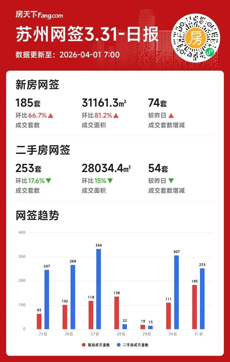 数据解读:新房市场火爆,单日成交环比大涨超六成;二手房单日虽小幅回落,但本月整体仍保持增长。购房建议:新房买家可把握当前热度,优先关注;二手房买家无需过度担忧,市场仍有支撑,可耐心筛选。