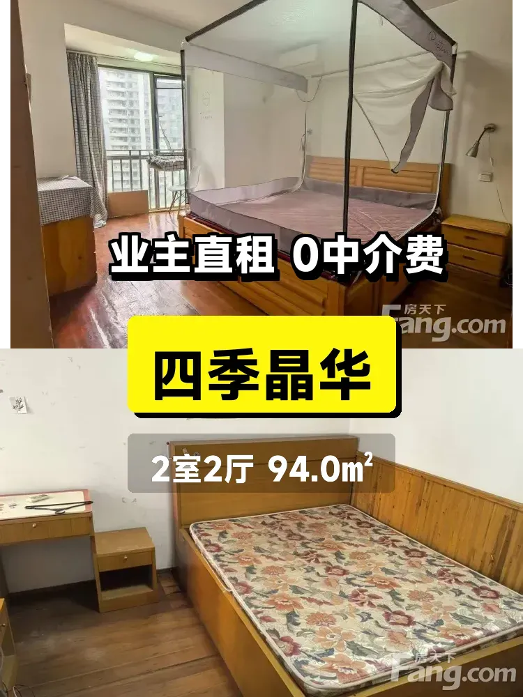 标题:自家94平精装两房出租!四季晶华电梯房,2800包物业💕