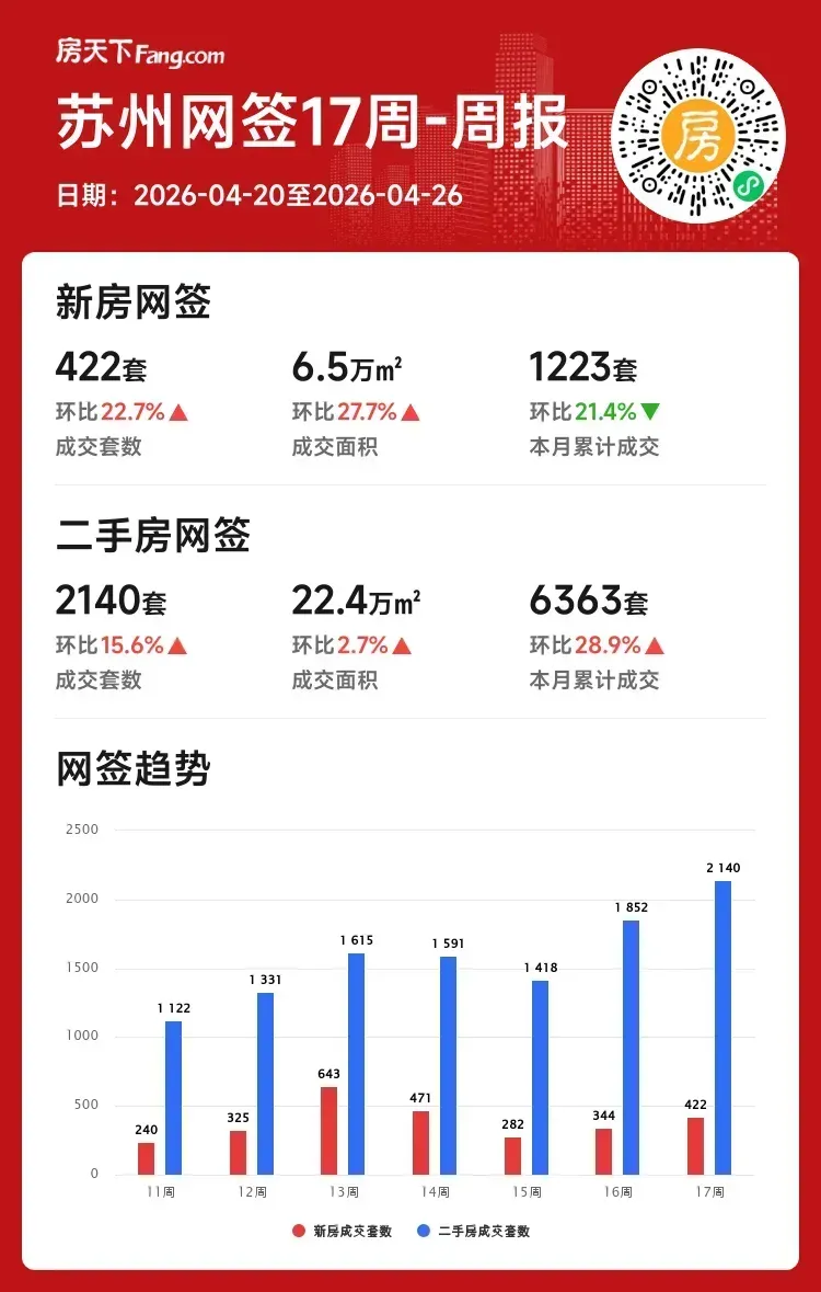 哈喽,各位小伙伴们!四月最后一周的苏州楼市数据新鲜出炉,整体感受就一个字:稳!📈 市场暖意仍在延续,特别是二手房,表现相当亮眼哦!