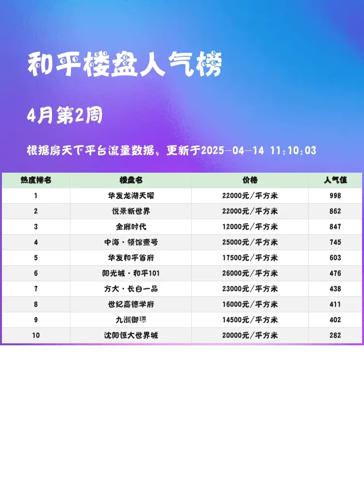 买房选对楼盘太重要啦!✨这份和平区人气楼盘榜单,帮你快速锁定优质房源~当前市场下,学区+地铁+户型是购房三大黄金法则,这份榜单正是围绕这些核心要素评选出来的,快来看看有没有你的心动之选💕