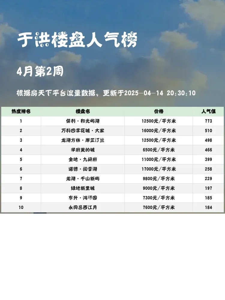 买房是人生大事,选对楼盘很关键!🏡 这份于洪区人气楼盘榜单,真实反映市场热度与购房者偏好。当前市场环境下,性价比+地段+品质才是王道,这份榜单给你最实用的参考~