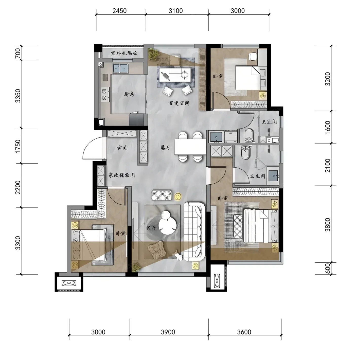 上周陪90后同事看房,发现这届年轻人买房太清醒:既要主城烟火气,又要户型能变形。云樾府115㎡洋房的"3+X"设计,硬是把三居改出四居功能,飘窗全赠送,阳台半赠送,得房率直接吊打周边竞品。