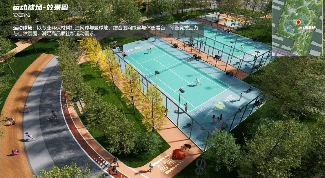 未来园区预计会配有❗网球场❗篮球场❗泵道场地❗宠物乐园等设施
