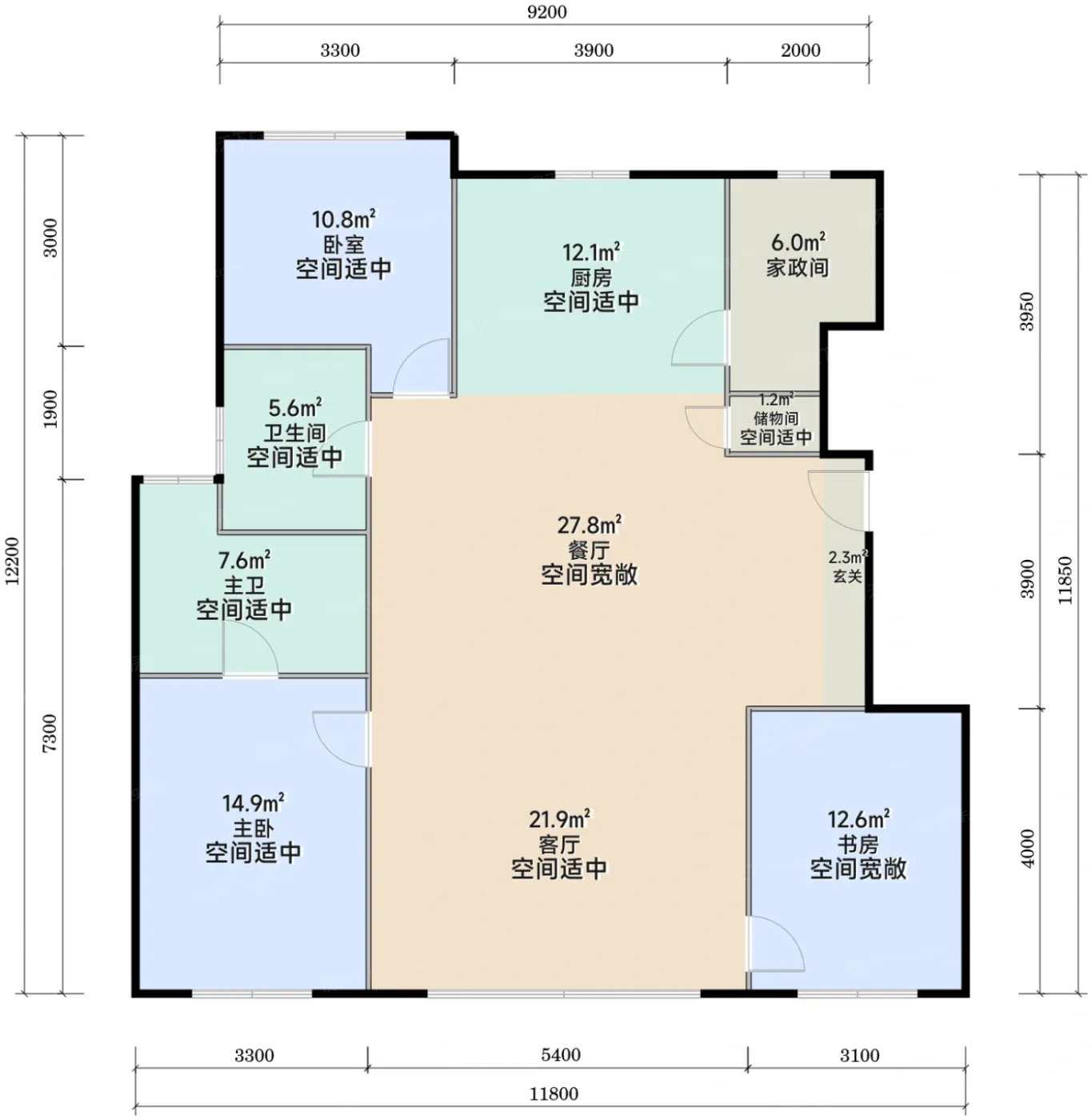厨房与卧室直线距离达6米,实测油烟扩散控制在8㎡以内。不过儿童房与客厅隔墙建议后期加装隔音棉。