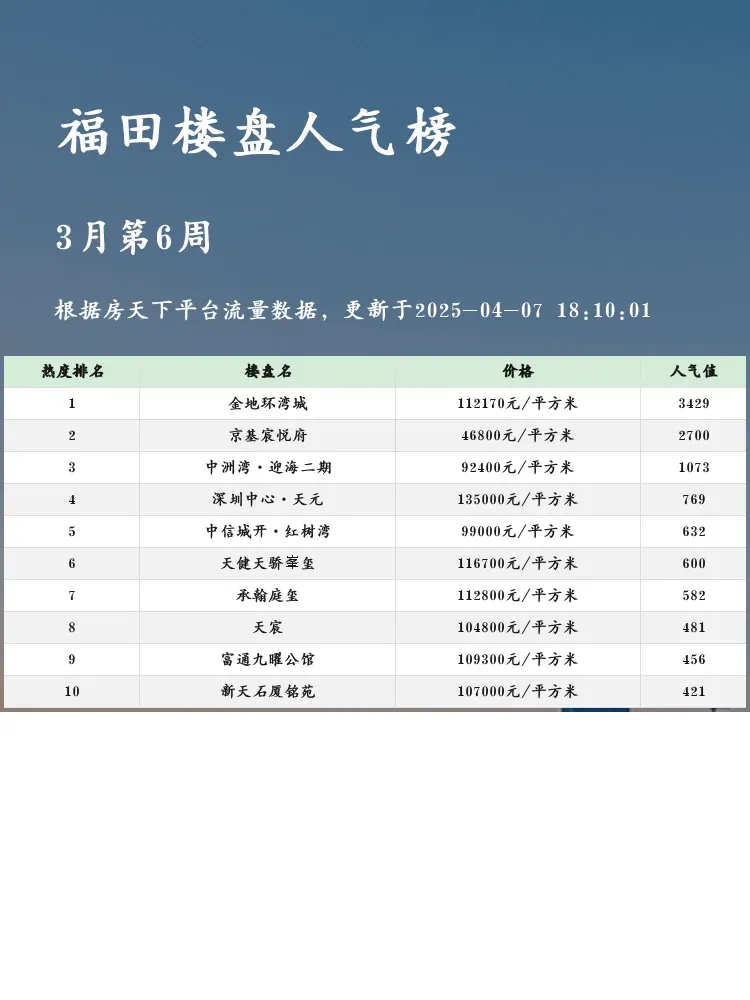 买房选对楼盘太重要啦!🏙️ 这份福田人气楼盘榜单帮你避开选择困难症~当前市场下,核心地段+优质配套+合理户型才是王道✨ 榜单综合交通、教育、户型等硬指标,给正在纠结的你最实用的参考💯