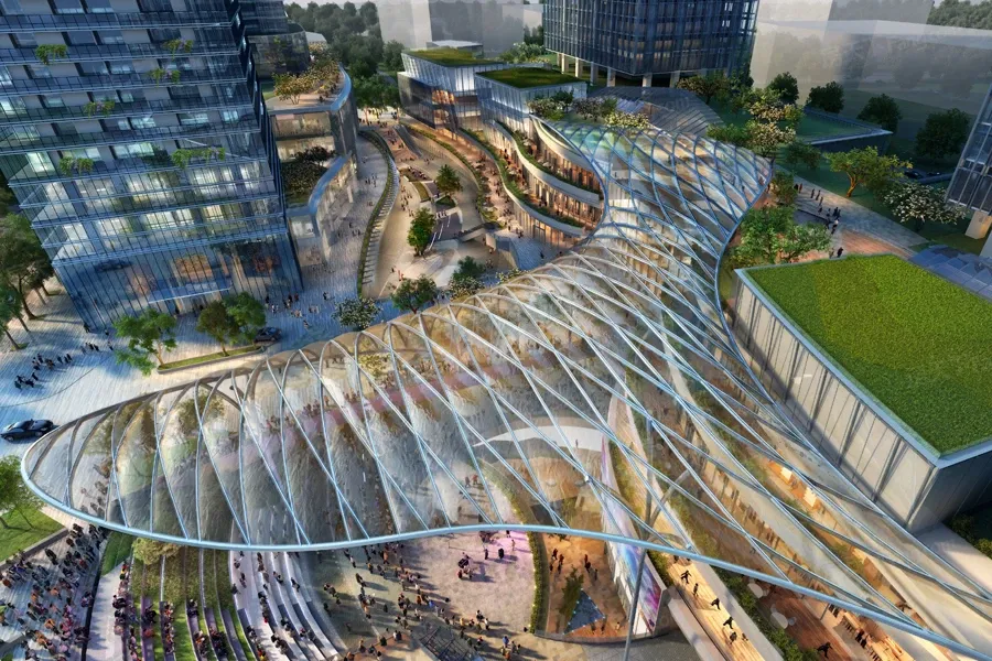 之前总觉得金融城都是冷冰冰的写字楼,但这里的业态组合直接打破认知——10万㎡商业体就像巨型魔方,办公楼直通商场负一层,下班不用出楼就能逛街看展。更夸张的是,三个地铁口都在步行圈,桂湾站223米实测只要3分钟!