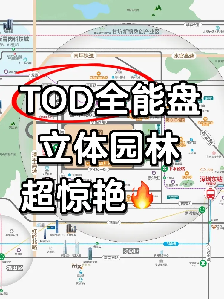 在深圳找真·地铁盘就像淘金,但这个项目的轨道布局让我惊掉下巴!25/5号线形成黄金十字,更绝的是水径西站预留了云巴接驳口。未来从家门口到深圳北站,全程轨道交通无缝衔接。