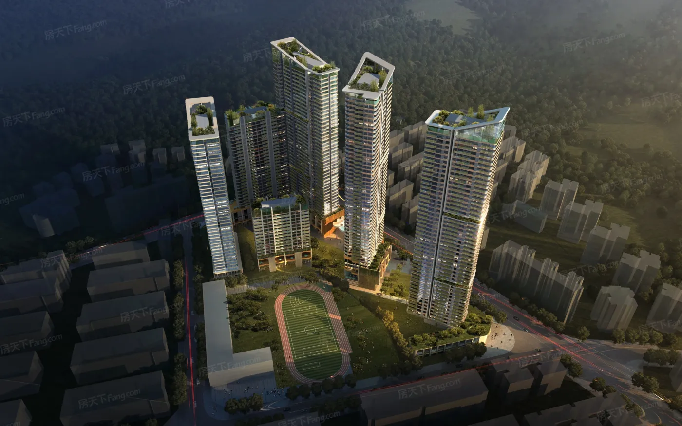 最近设计院都在研究东海富汇豪庭的倒L型布局:5栋塔楼在西南角围出独立教学区,既保证采光又形成噪音缓冲区。北侧布置紧凑户型控制总价,南向大户型独享山景视野。更厉害的是在7.9容积率下,用空中连廊串联起羽毛球场/儿童乐园等15个共享空间,真正实现了"把地面还给人"的设计理念。