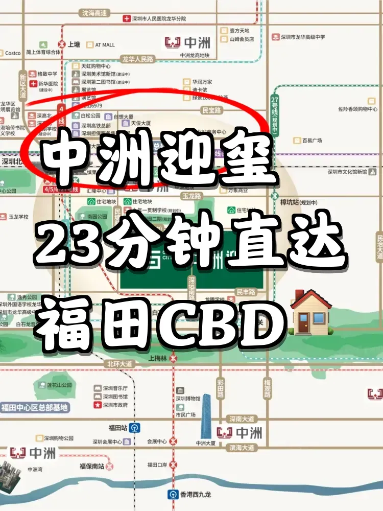 每天往返福田龙华的姐妹注意了!最近发现中洲迎玺这个神仙楼盘,从家到福田会展中心居然只要23分钟!实测早上7:50出门,步行8分钟到深圳北站,搭4号线到市民中心刚好赶上9点打卡。⏰