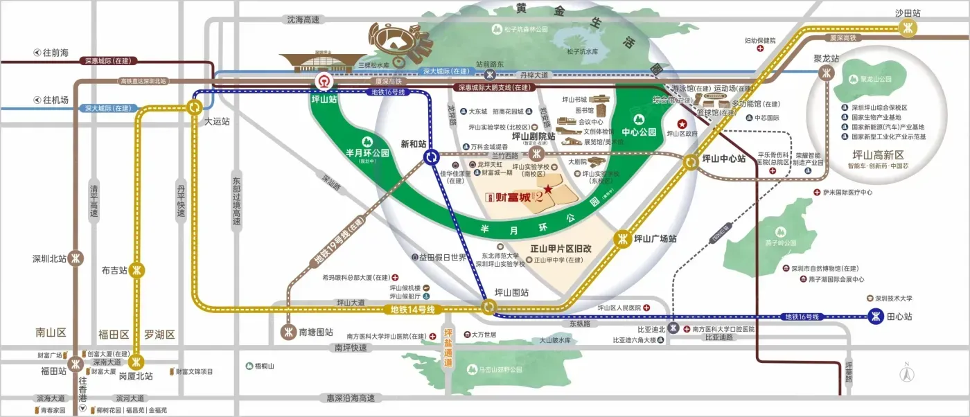 秘密藏在项目门口的轨道交通网:三条地铁线如同三根时针,14号线快线6站飙到大运,无缝衔接3号线直插福田。更科幻的是在建的深大城际,9站直达机场T4的配置,让出差党能多睡1小时美容觉。