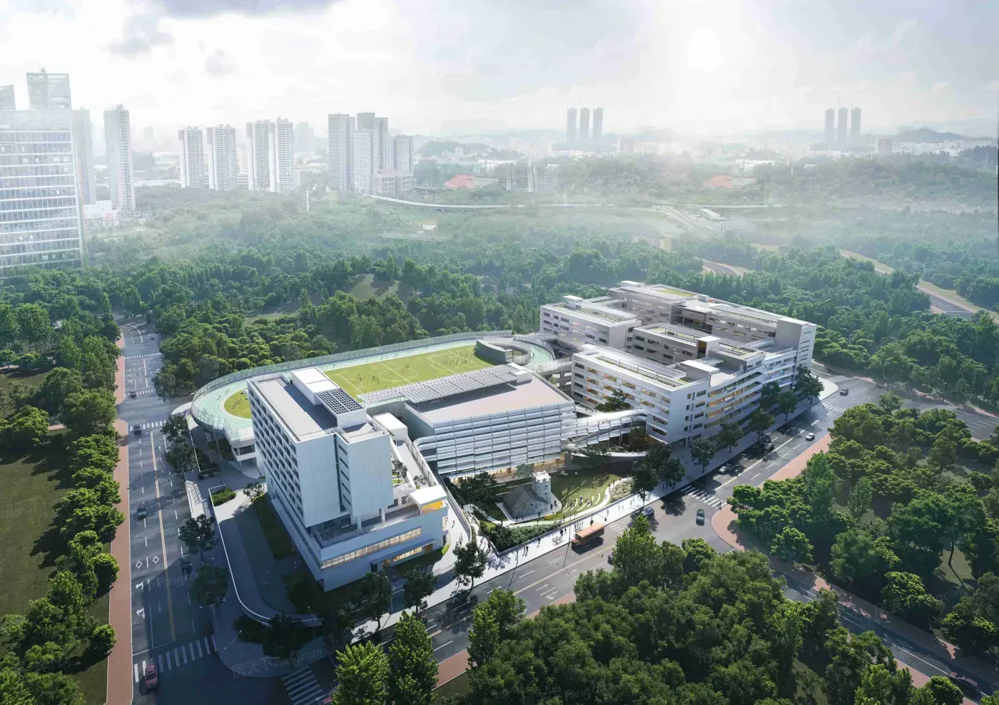 优点不藏着掖着:龙岗区第五人民医院开车5分钟、配建龙高教育集团学校(2026招生),家门口还有30万㎡融湖商业体在建。但北侧工业园区的电子厂噪音,建议选3栋以上南向房源规避。