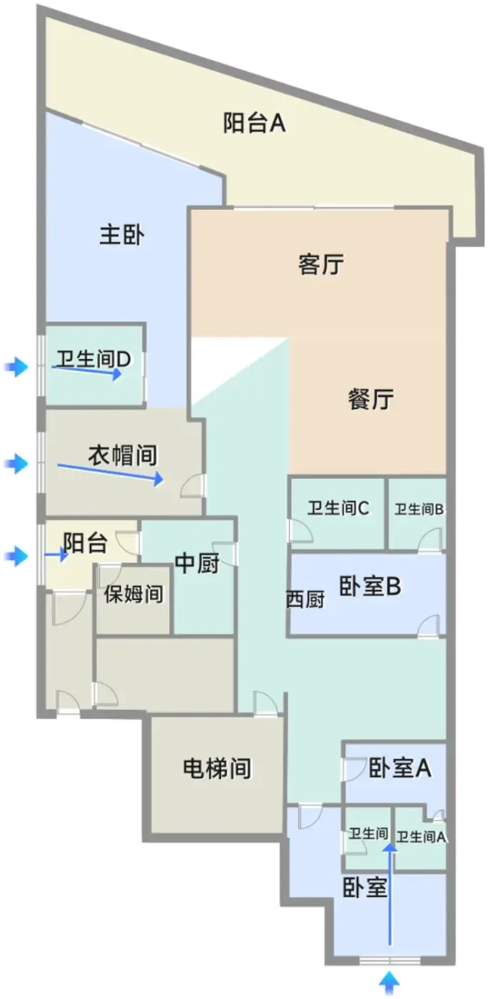 ✘ 全屋6个卫浴意味着每月多出2000+水电清洁成本