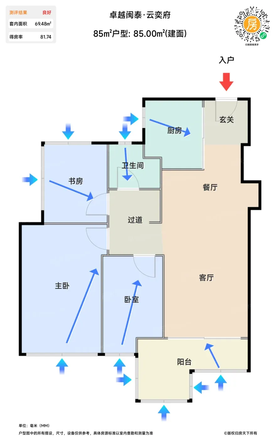 卓越的「奕式」产品线这次玩明白了,直接搬运自家交付项目的现成方案。110㎡四房复刻了柏奕府的双洄游动线,但厨房收纳少了两组抽屉。要夸的是全屋配齐日立中央空调+全热交换新风,这在6字头楼盘里真算厚道。