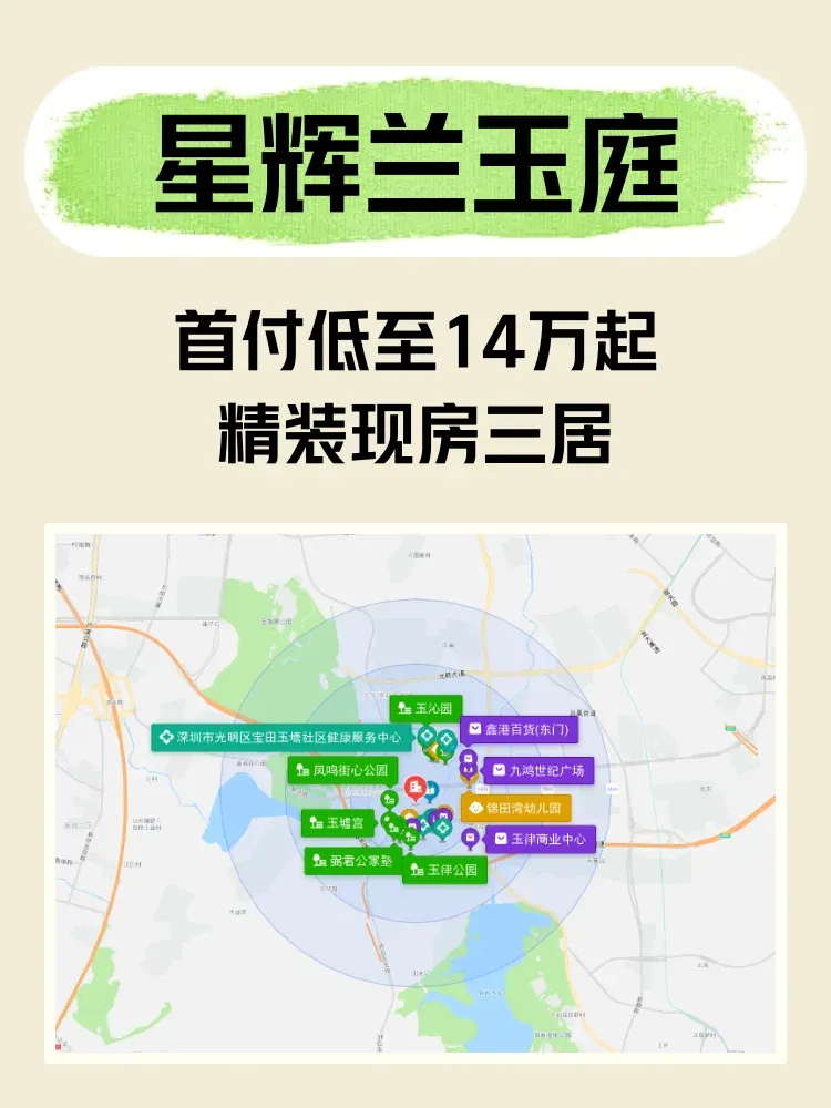 3️⃣ 玉塘街道这排面真不是吹,下班路上能遇见迈瑞医疗的班车,旁边玉律学校去年积分只卡30分(非深户购房就能达标)。但要注意小区5.0容积率,建议选中高区避开底商视野