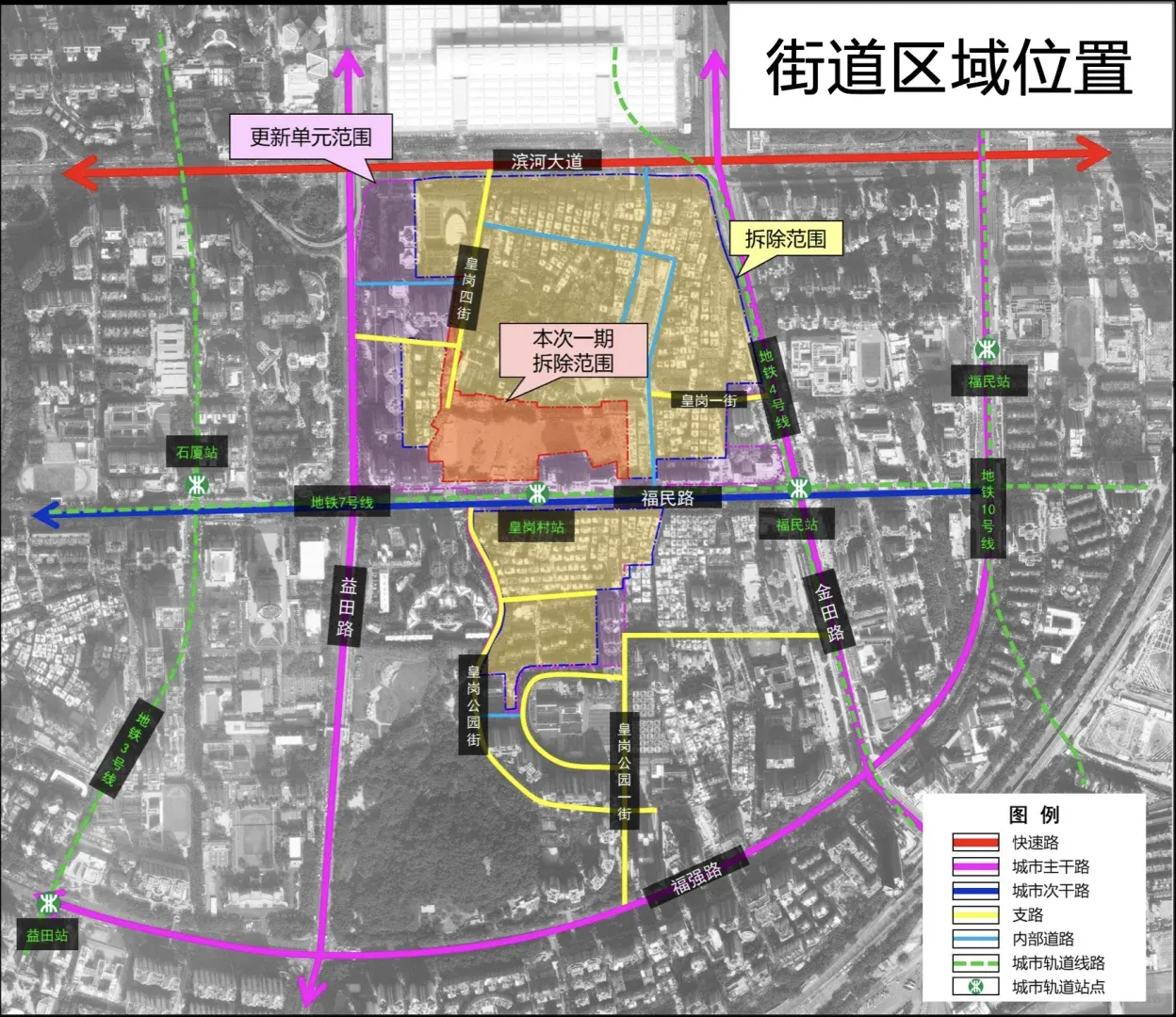 地处福田福民路与皇岗二街交汇处西北角,紧邻深圳地铁7号线皇岗村站。